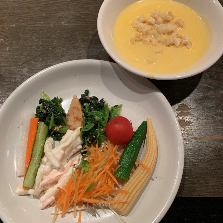 サラダバーと言いつつ盛りだくさんで、パンやカレー、ガーリックライスに自分で焼けるたい焼きやワッフル等色々おかわりしてお腹いっぱいになりました。