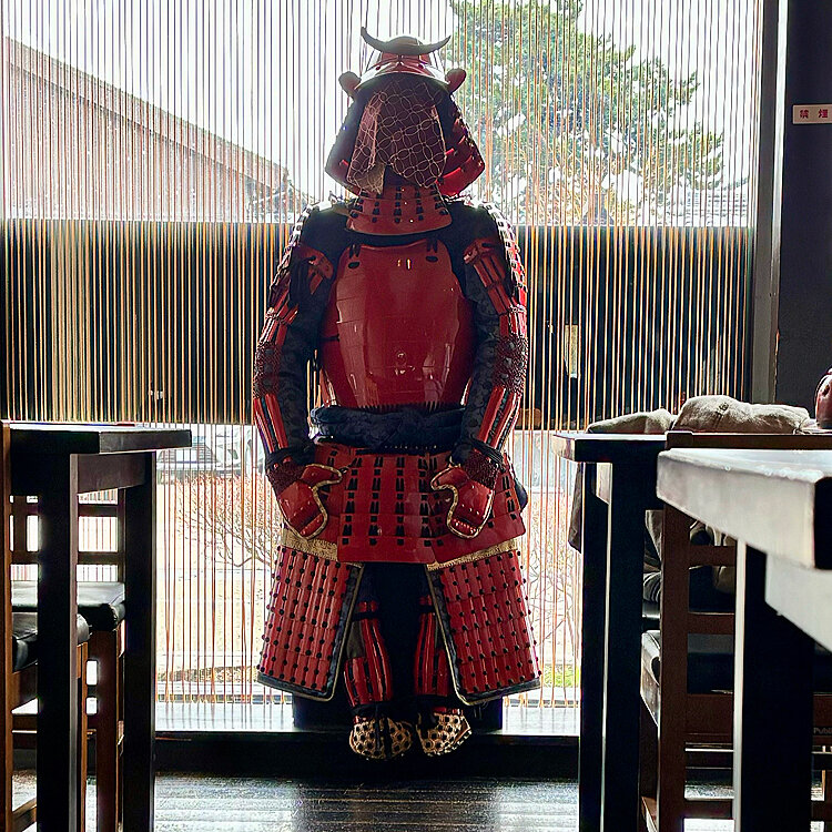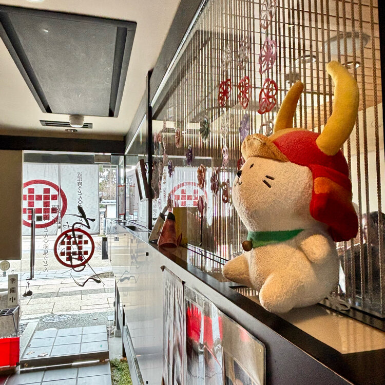 く、茶道、歌道、能楽(ちゃ・か・ぽん)などに真摯に取り組み、文化人としてその道を極めた十三代目藩主・井伊直弼公をイメージして、近江の食材である近江牛・赤こんにゃく・丁字麩をあしらえたうどんです。それぞれの味を楽しみながらお召し上がりください。🪧