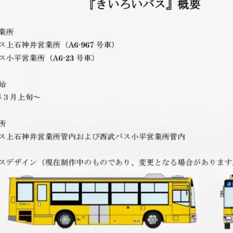 「きいろいバス」🚌みーつけた😃 西武バスさんが西武鉄道2000系をモチーフに内外装を仕上げたスペマ車両。 良いことあるかなぁ😃