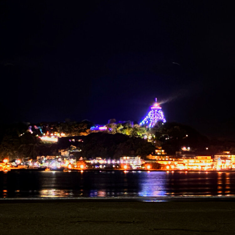 から眺める江の島シーキャンドルも海面にイルミネーションが映り込んでステキ💓