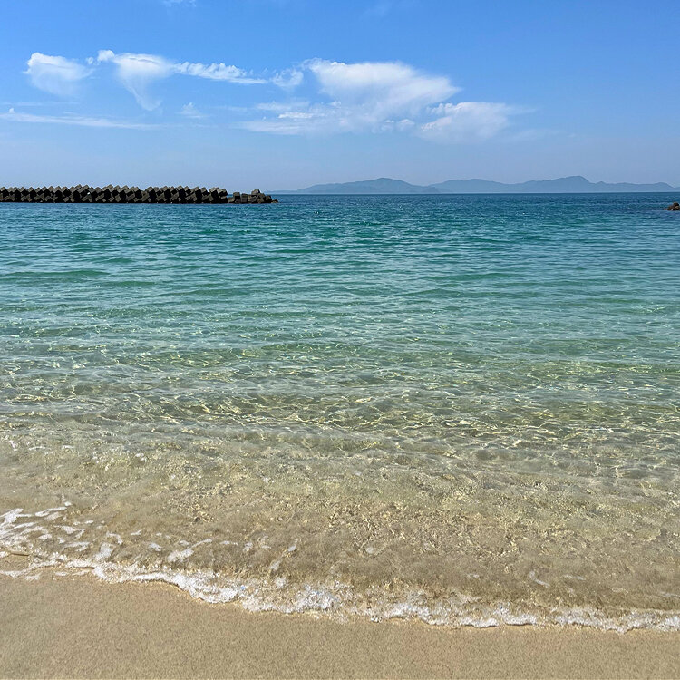 食後は外に出てすぐそばの海岸に行きましたが、沖縄かと思うほどの綺麗な海と砂浜✨✨