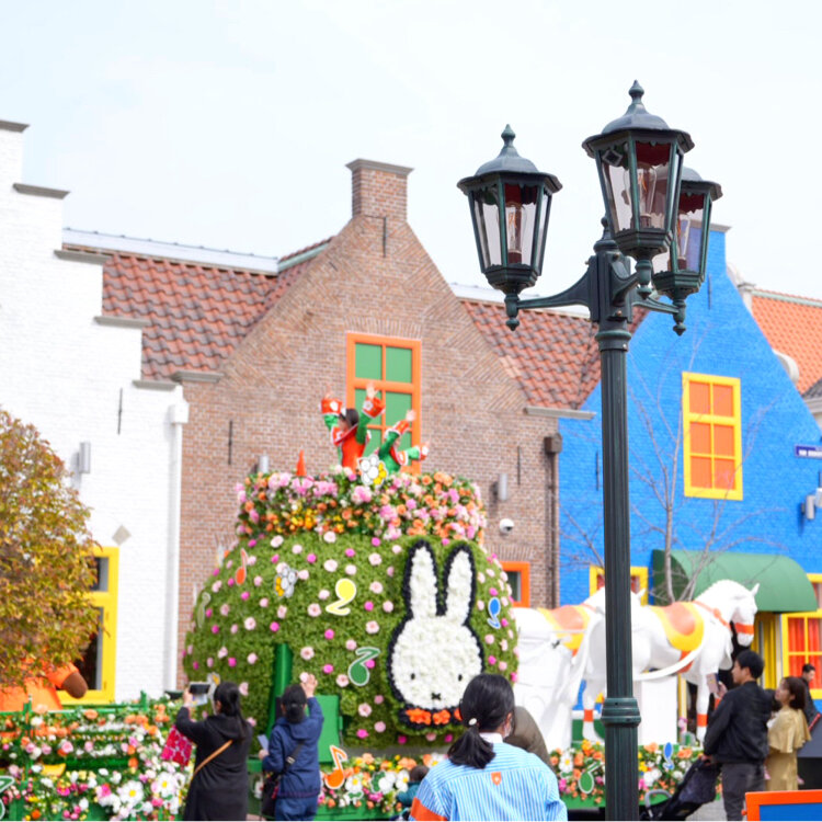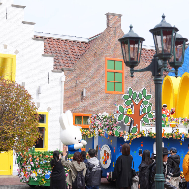 ハウステンボスに昨年オープンしたミッフィーエリア。ミッフィーの世界観そのままの色づかいや絵本から飛び出してきたようなキャラクターに、子どもだけでなく大人もワクワクするエリアです。