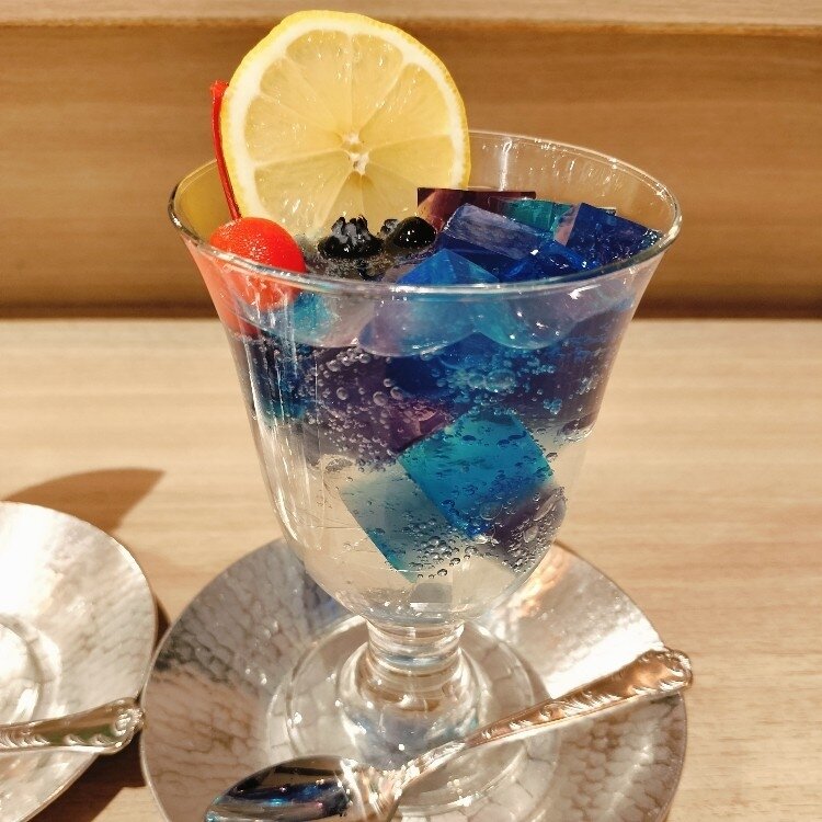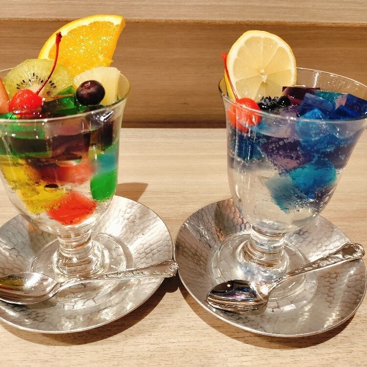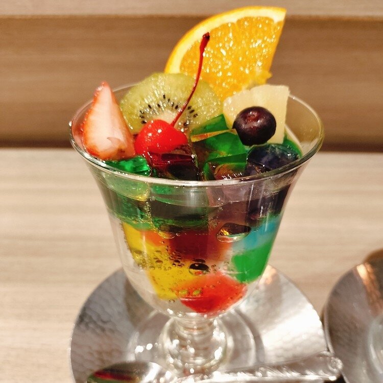 京都にある喫茶ソワレが日本橋三越に催事で出店していると聞いて、子供と行ってきました! かなりお客さん並んでいて…。平日でしたがお店に入るのに2時間待ち😅 夜会のゼリーポンチとゼリーポンチを注文!本当に可愛すぎでした✨️ 子供は写真かなり枚数撮ってました🥰
