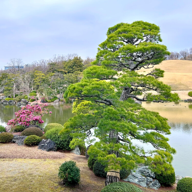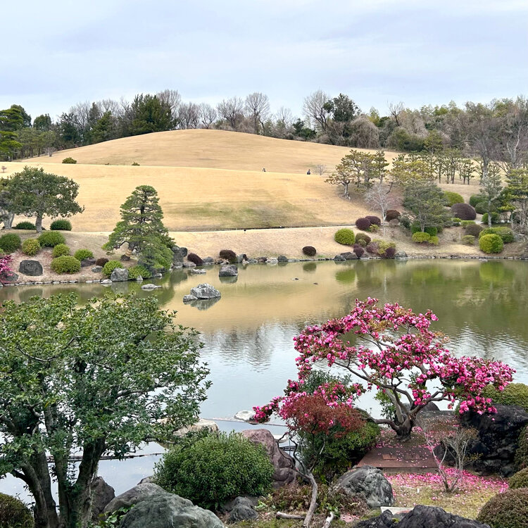 「万博記念公園」 *日本庭園 東西1,300m、南北200mの細長い地形の庭園の面積は26ha有りとても広いので、この日は梅林まで歩いて、椿やアセビを見ながら中央休憩所に戻りました。 中央休憩所からは、芝山(築山)を背景に、心字池、石組み、多くの名木、雪見灯篭など、日本庭園の成熟期にあたる華麗な「池泉回遊式庭園」の景観を鑑賞することが出来ます。 テーブルも有り、石のベンチにいぐさの敷物をひいてくれていたので、皆さんお弁当を広げていました。私も持参したロールパンサンドを庭園を眺めながら頂きました。 #万博記念公園#日本庭園 #椿#アセビ#芝山#心字池中央休憩所#私の街の春#私のことりっぷ旅