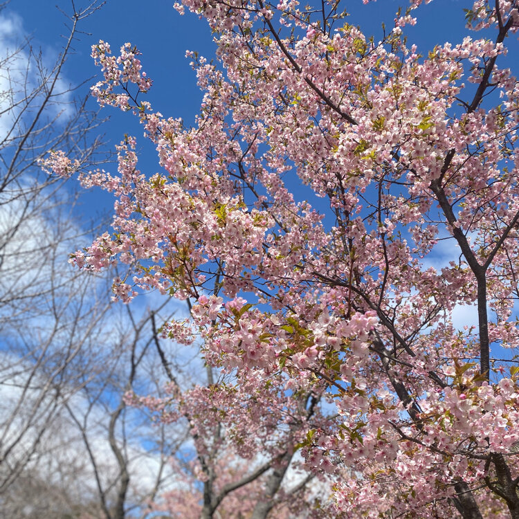 万博記念公園は一部の桜が満開に。菜の花も咲いていたし、園内を巡るレトロな電車もいい♪