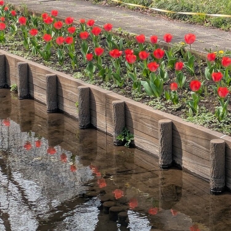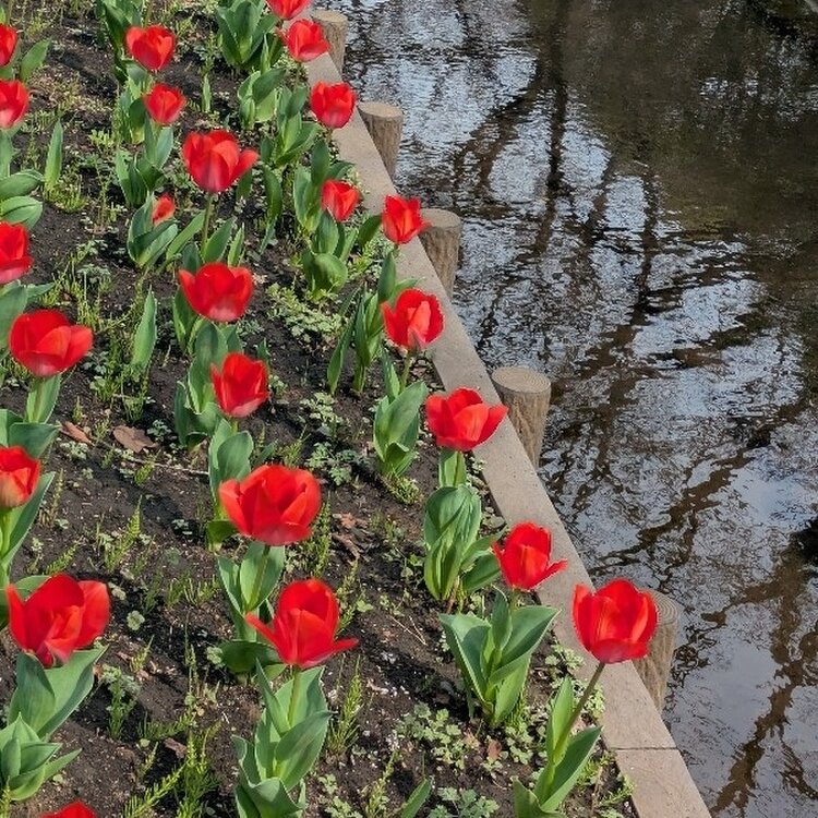 咲いた咲いたチューリップの花が ならんだならんだ 赤・白・黄色 あれっ⁉️ 黄色がない⁉️ 黄色のチューリップ咲くのを待ちます