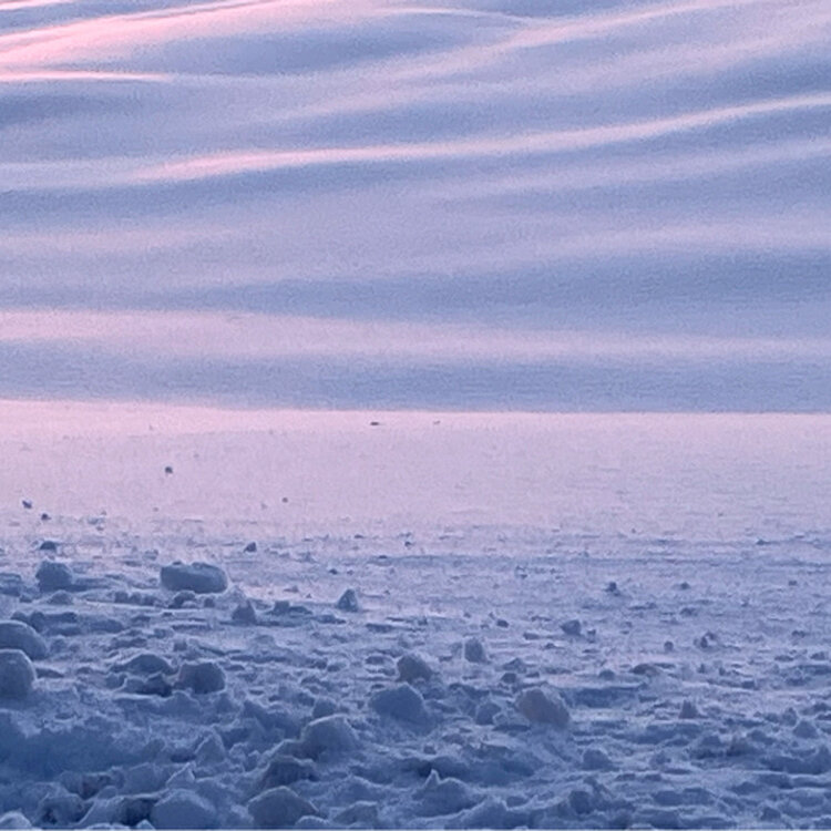 春へ向かう〜雲 夕空の高い雲は一面の雪雲のようなオールドカラーで その下の雲は夕陽に縁取られて 時々…すり抜けて… この色を繰り返して春は近づいて来ます