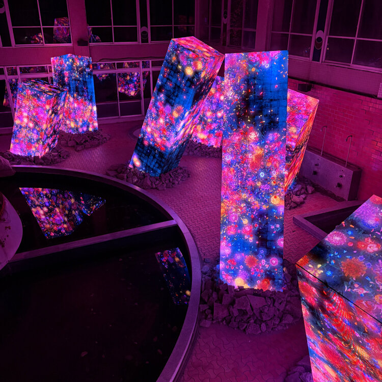 老舗旅館×チームラボ 過去・現在・未来×人×環境 #佐賀#武雄温泉#御船山楽園ホテル#アート#建築 ・アート鑑賞入口の自動ドアが開くと もうそこはチームラボの世界観 ランプが壁や床にリフレクション 幻想的な空間と音響で作品の中に没入 ・今回のテーマは廃墟だったようでちょっと怖かった 今は使われていない温泉施設(廃墟)に花が咲き、咲きほこり、散るまでの姿が映し出されていました 過去の時空と交差する今ココ。不思議な世界観。 ・写真3枚目の作品が特に印象的 「生」という字が樹木に見立てて描かれ 1時間で1年分の花や植物が咲いては散りゆく様が 表現されています。 行きで見たのは梅や桜 帰りに寄るとススキが揺れていました ※翌日、この木とリンクする出逢いがありました 過去・現在・未来 人と環境 このチームラボの世界観にいつも考えさせられます 冬なので館内6つの作品のみ 時間があれば素敵なサウナや温泉も行ってみたかった #muuの佐賀旅