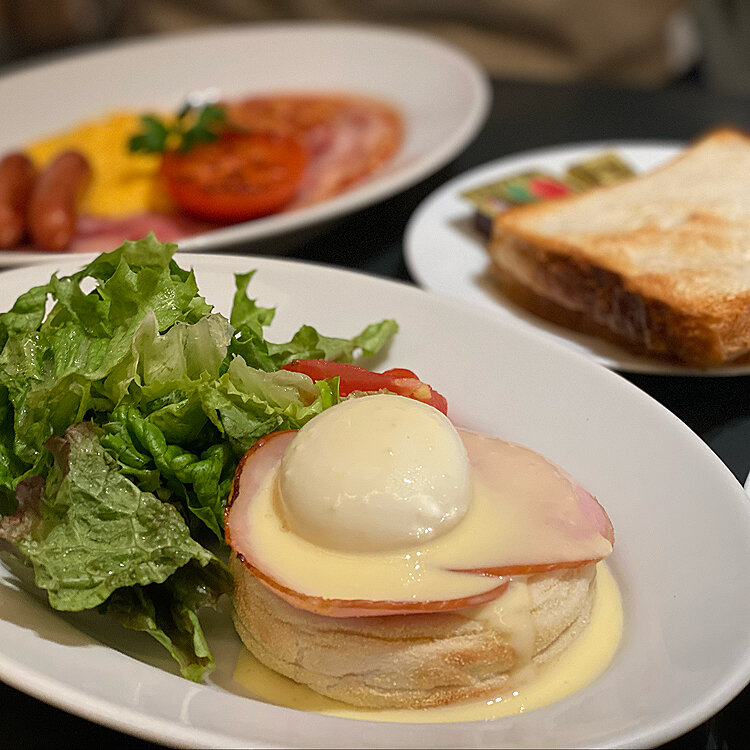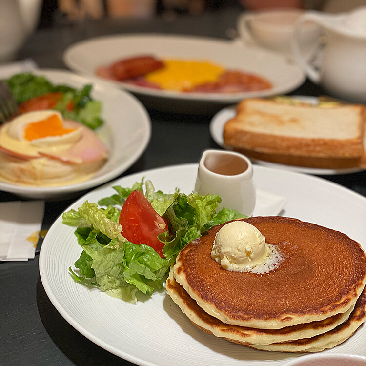 そうだ 京都、行こう。 突然の京都日帰り旅 モーニングどこにしようかと 名古屋と違い、ワンコインでは食べられないねぇ だったら朝から贅沢モーニングしましょうか! ✴︎イングリッシュブラックファスト ✴︎オリジナルパンケーキセット ✴︎エッグベネディクトセット 朝からモリモリ食べて1日のスタートです! #京都 #日帰り #女子3人