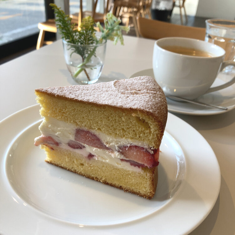 * マーガレットハウエル カフェ * ヴィクトリアスポンジケーキ♡ あら?ルックスがちょっと変わった? 大きめのスポンジ、いちご、クリームは健在です。 #吉祥寺 #ヴィクトリアスポンジケーキ #Myことりっぷ #マーガレットハウエルカフェ