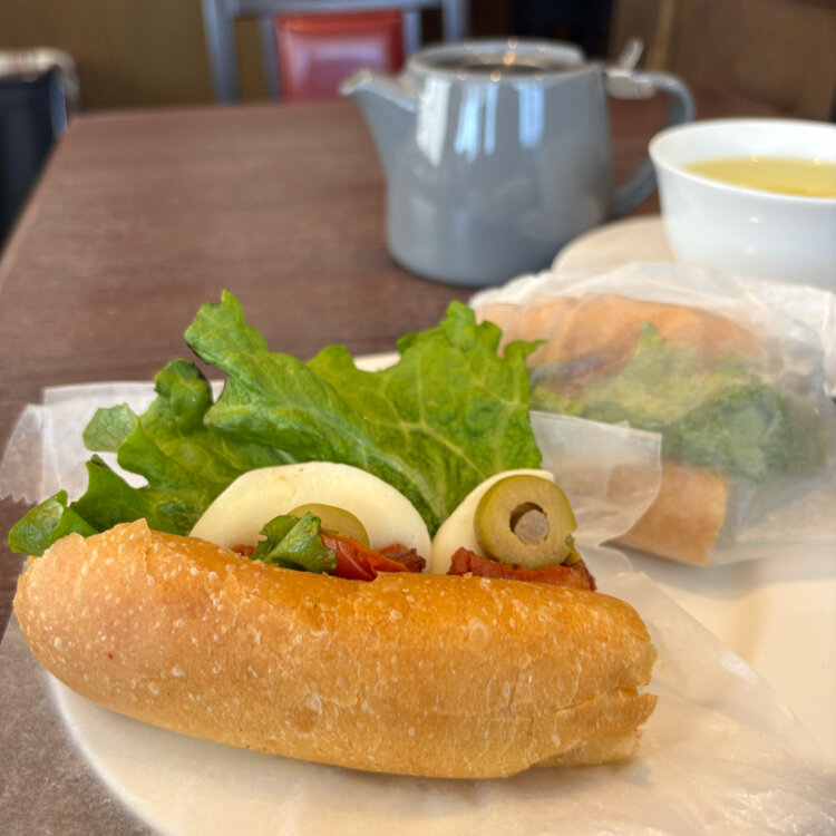 レタンプリュス トマト&モッツァレラチーズ * 久しぶりにレタンプリュスで ランチ&ティータイム☆ まずはサンドイッチを…☆ トマト&モッツァレラチーズ☆ ドライトマトにモッツァレラチーズ オリーブにレタス☆ パンはソフトなバケット☆ オリーブオイルの香りの ドライトマトは フレッシュトマトとは違う 噛み締めるたびに濃厚なトマトの味わい じんわり…☆☆☆ あっさりしたモッツァレラチーズと よく合います☆ パンもおいしっ! * ゆっくりおいしく サンドイッチを噛み締めたあとは… さらにケーキで癒されます〜☆ #バケットサンド #サンドイッチ #ブーランジェリー #パティスリー #カフェ #イートイン #流山おおたかの森 #流山市 #千葉県