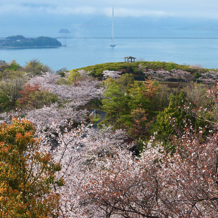伯方島の『開山公園』の桜。 開山展望台からは360度の瀬戸内海の多島美を堪能でき、しまなみ海道の「伯方・大島大橋」「大三島橋」「多々羅大橋」の3つの橋を同時に見ることができます。 が、展望台は雨と霧で真っ白。(3枚目) 2時間待って見えた景色、 まずは大三島と生口島をつなぐ多々羅大橋。 #伯方島#開山公園#今治市#愛媛#多々羅大橋#しまなみ海道#瀬戸内の島旅#Ayu桜