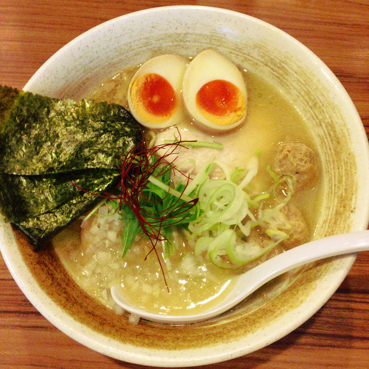 麺屋武一 新橋本店。 濃厚鶏白湯そば。 スープが、トロ~っと濃厚で美味しいです。 写真は具、全部のせ! 鶏つくね3つ入ってて、これも美味しい♪ 髪ゴムや紙エプロンを出してくれたり、女性1人でも、入りやすいお店です☆