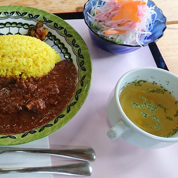 二本松城に行った時に入ったカフェ。 テーブル3つの小さなカフェでご飯物はカレーのみかな? 味は本格的、香辛料の効いた美味しいカレー💕食後にアイス付きます。