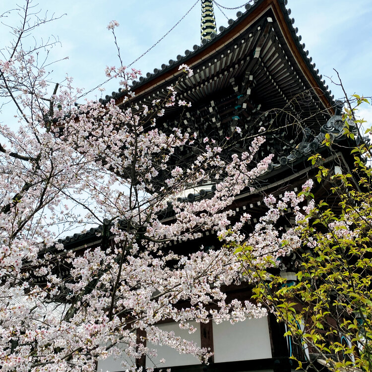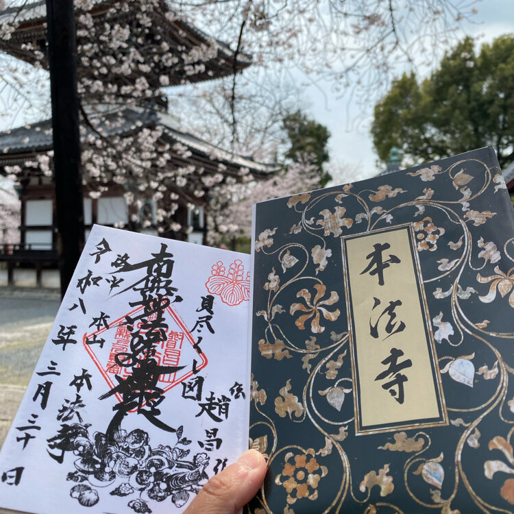桜🌸散策 堀川通を歩いていると、桜🌸が目に飛び込んできました😆 長谷川等伯と関係の深い、本法寺。 ちょうど涅槃図の公開(普段は複製画)があります。   撮影はできませんが、圧巻の大きさ! 縦10m×横6mの大作です🫢 まさに寺宝ですね✨ お庭は本阿弥光悦、唯一の庭☘️ 多宝塔の周りには、桜🌸が咲き、春らしい光景です🥰 #桜 #御朱印 #涅槃図 #特別公開 #長谷川等伯