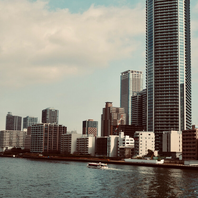 ✧✧⋆⋅⊱∘-隅田川高層ビル郡-∘⊰⋅⋆✧✧ 聖路加タワー46階から臨む景色…勝どき橋と高層ビル郡の街並み。ガラス越しですが、爽快な見晴らしを楽しむことができました。タワーを降りて、隅田川沿いを歩き、勝どき橋を目指します。