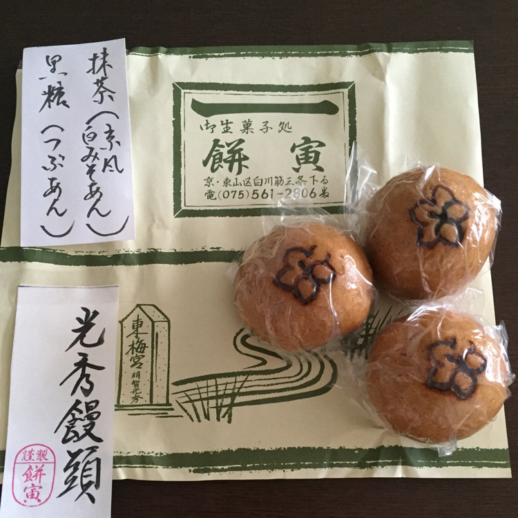 お久しぶりです〜 今日は京都白川通りにある餅寅という和菓子屋さんで、光秀饅頭を購入😊 近くには光秀の首塚もあり歴史を感じました!