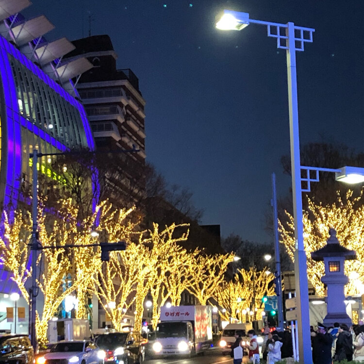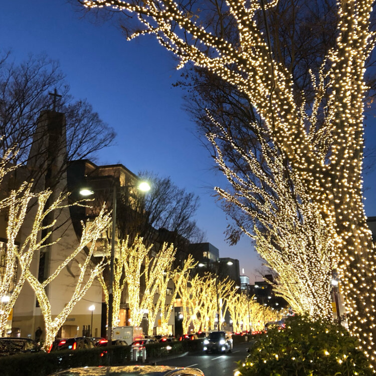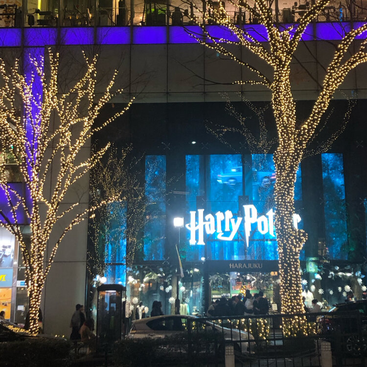 表参道イルミネーション 相変わらずすごい人だけどやっぱりキレイだー ブランドショップに紛れてハリーポッター発見 神宮前交差点からの眺めが好きです もうしばらく12月の景色を楽しめますね