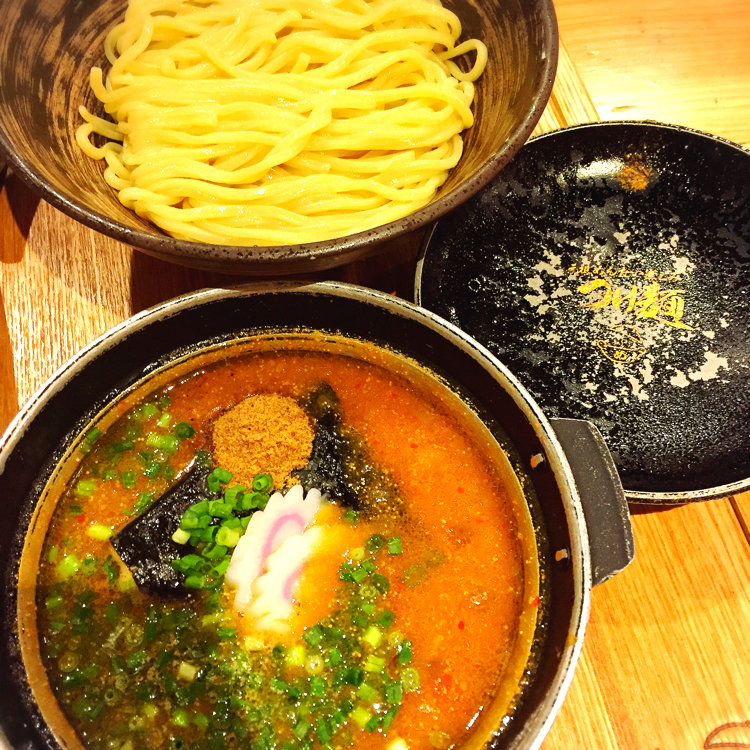 明太子つけめん。 熱々のお鍋で煮込まれた明太つけ汁で頂くつけめん。麺は100〜300gまで同一料金です。 ご飯も欲しくなっちゃう。