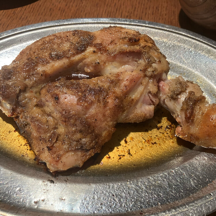 四日市 かもんさん🍗 骨付鶏です🍗☺️ 、 わたし骨付鶏好きなんです😊 、 これまでに高松 金比羅山、徳島、仙台でいただきました😋 、 骨付鶏とは 戦後に遡ります💁‍♂️ 当時貧しい日本🇯🇵 アメリカの文化が入ってきてた頃、香川県丸亀市に住むある夫婦がアメリカ映画を観ていると 、 骨付きフライドチキンを丸かじりするシーンがありました🍗😬 、 え?美味しそう過ぎる🥹 こんな贅沢な食べ方してみたい🥹 、 こうして編み出された骨付鶏🍗✨ 、 これが骨付鶏で有名な一鶴さんです😊一鶴さん美味しい 、 一鶴さんが東京や大阪、福岡など店舗を広げて全国的に有名になった骨付鶏さん🐓 、 三重県では香川の骨付鶏が食べれるお店はありませんでした(たぶん) 、 しかし去年四日市にお店が出来た事を知りずっと行きたいと思っておりました😊 、 やっと行けましたよ😊 、 駐車場はないのでコインパーキング🅿️ 、 キャパは20人ぐらいでしょうか 11:30着で数人でしたが待ってる間に満席です😊 、 骨付鶏ランチ1,000円😳安い 、 ごはんと汁物があって1,000円はうれしい☺️ 、 定番のひな🐣でお願いします🙋‍♂️ 、 来ました🥹 、 ジュージューです🥹 、 ハサミでチョキチョキ✂️😊セルフチョキチョキです 高松の蘭丸さん方式ですね😊 、 ではいただきます🙏😊 、 美味しい😋 、 仙台の繁華街ではにんにく少なめだったけど四日市の繁華街は関係なしですね😊 、 でも香川に比べるとパンチ力はちょっと弱い気がしますが充分ノックダウンされました☺️ 、 骨に残ったお肉をチョキチョキ🙂 、 黄金油と細かいお肉をキャベツに乗せて🙂 、 美味し過ぎる😂 、 さらにごはんにドバーします😊 、 やばい😇 、 久しぶりの骨付鶏🍗ごちそうさまでした😋 、 、 #あきらの東海