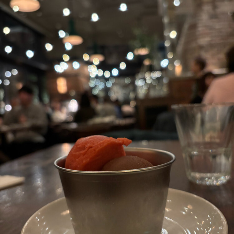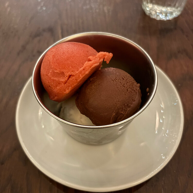 イチゴ🍓とヘーゼルナッツ🥜、ミルク🥛のジェラート🍨🍧 カップが最後までキンキンに冷えていて いちご🍓のジェラートはとってもジューシーで美味しかった😋 #ことりっぷと一緒 #開運旅 #丸の内#丸の内ブリックスクエア#A16#ディナー#デザート#アイス🍨