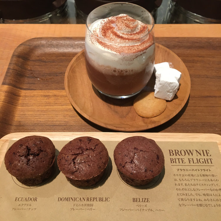 カカオ豆が異なる3つのブラウニーの 食べ比べが出来る