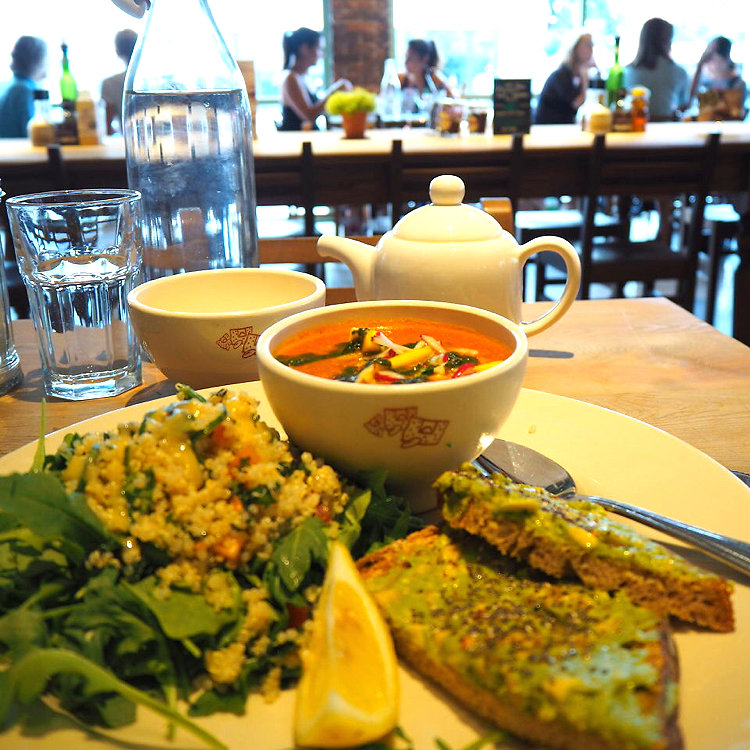 今回初めて来たので、いろんなものをちょっとずつということで、Baker's Lunchというものをチョイス。ガスパチョ、キヌアサラダ、アボカドトーストのワンプレートで$15くらいです。ちょっとお高めですが、オーガニックなものだしグルテンフリーでもあるし、とても健康に良い!そしておいしい❤️ ガスパチョはtoo salsa tasteで好みではありませんでしたが、キヌアサラダとアボカドトーストには感激でした😭また来ます!!