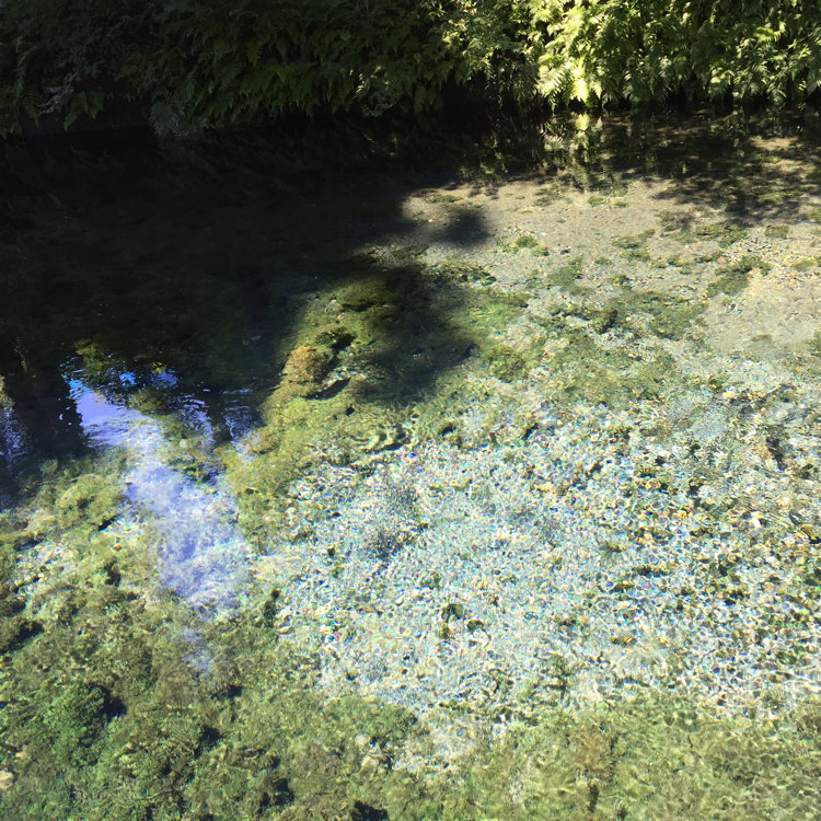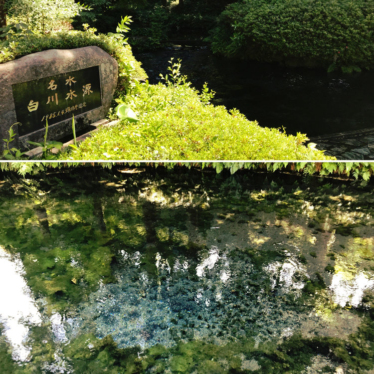川底から、小さな渦が、くるくる、 水が湧いてくる様、不思議です。 透明なきれいな水を、 自由に汲んで飲むことができます。#白川水源#南阿蘇#熊本