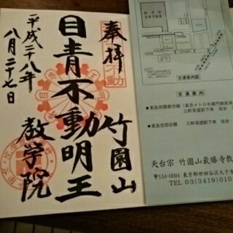 20160827⑤ 最勝寺教学院(目青不動尊) 終点三軒茶屋駅すぐ近くです。5色、あるそうで。集めたいなぁ。久々のお寺の御朱印です。