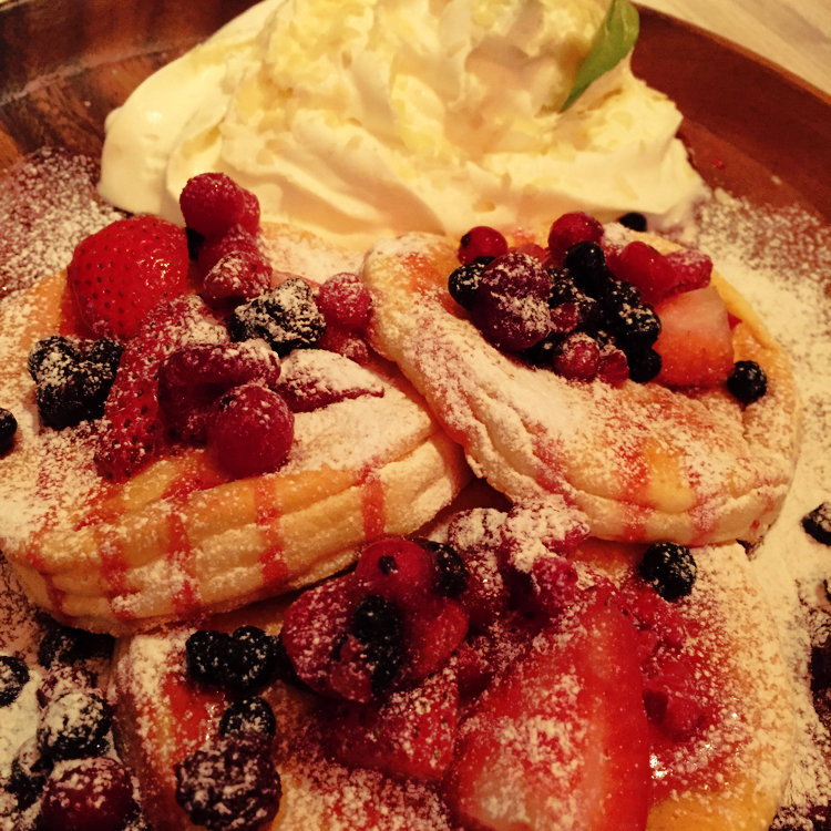 #わたしの街 同じくモアナイナのミックスベリーのパンケーキだったかな。ちょうど3人で分けたので一瞬で無くなりましたw
