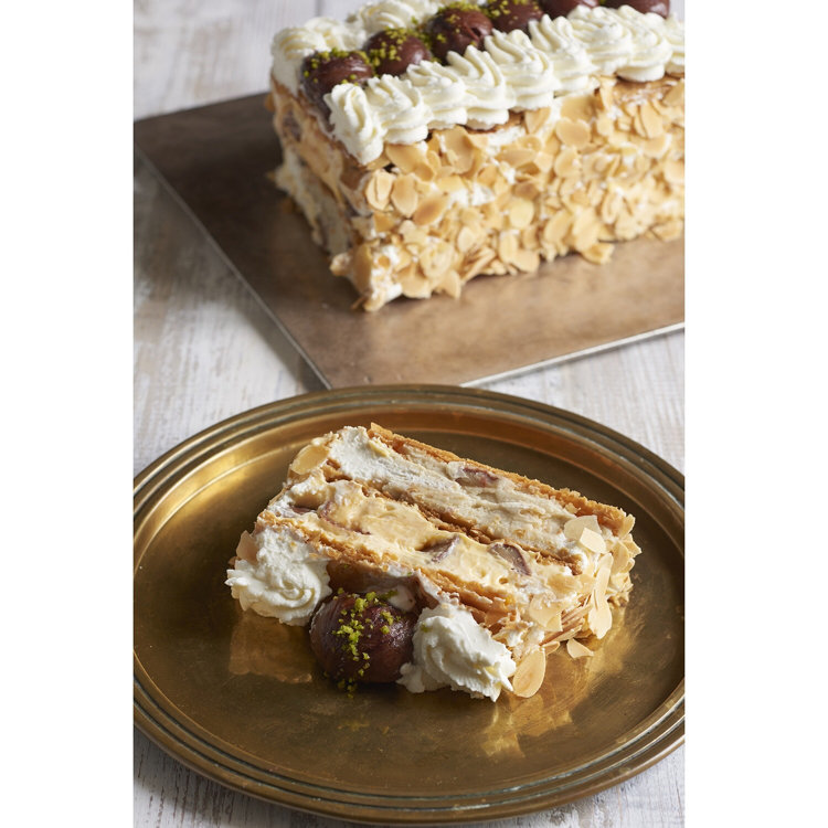 マロンクリーム、生クリーム、カスタードクリームの3種類のクリームをサクッサクッに焼き上げたパイ生地でサンド。パイ生地の食感を存分に味わってもらえるよう、作り置きをしないため時間と数量を限定しての販売になったのだとか。
