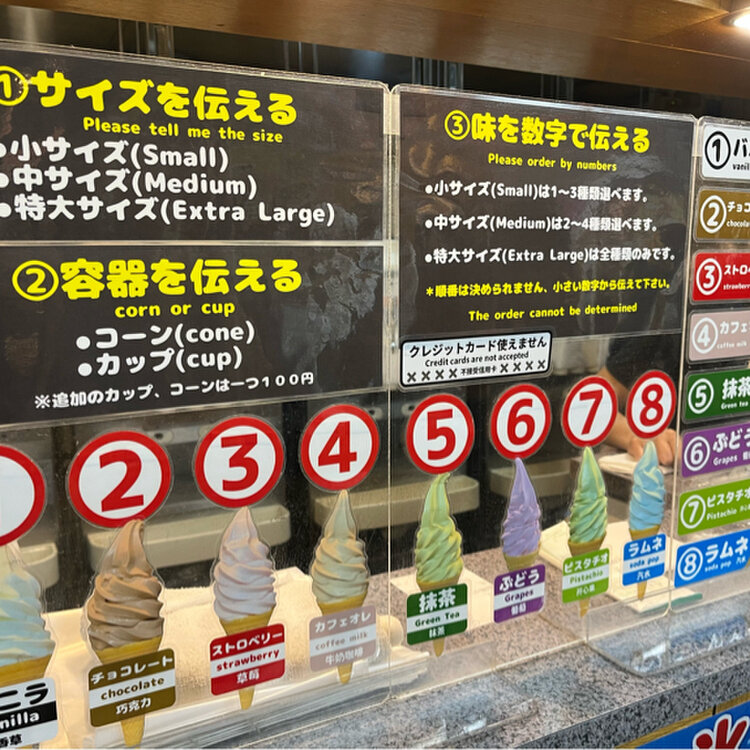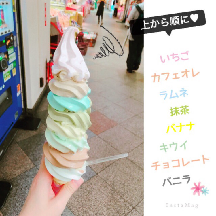 中野ブロードウェイ なかなかディープなスポット 地下ではソフトクリーム売ってました。 20人ほどの行列ができていたので一安心。 無難に小サイズ 映えるなら②⑥⑧かなぁ? 食べたい味は①⑥⑦と考える時間も楽しい🍦 巻く順番は選べませんが巻く順番によって味わいも変わってきますね。