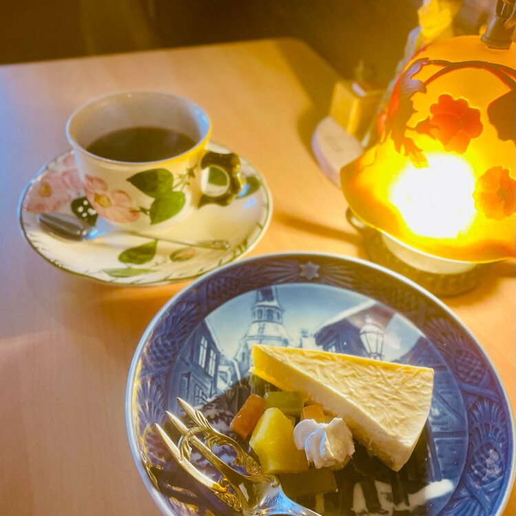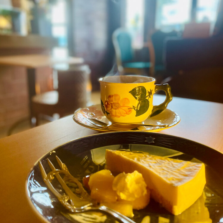 写真⑤バス待ちの間、駅併設カフェで大林製菓さんの胡桃のお餅を頂きました😋