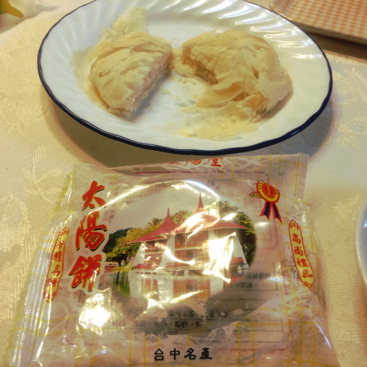 台湾 台北駅で買った太陽餅。台南じゃなくて台中土産だった様子。空港にも売っているが、パサパサなので、サクサク派にはオススメしませんぞ。