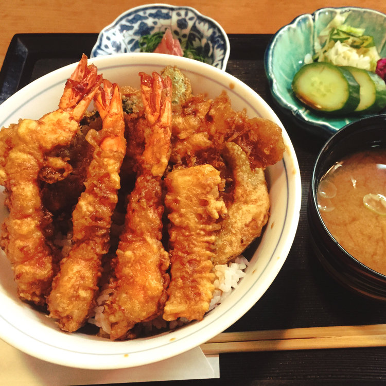 こちらはランチの天丼。 なんと海老天が3本も! 少し濃いめのタレにサクサクの天婦羅がどんどん箸が進みます。