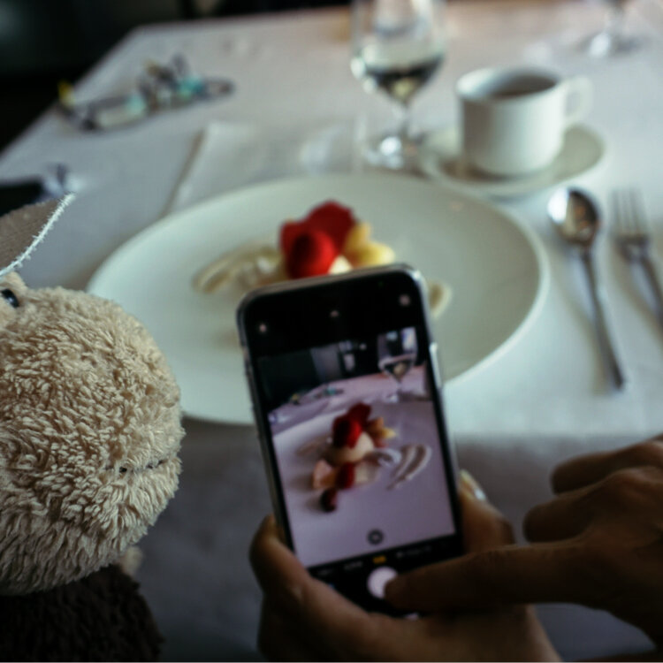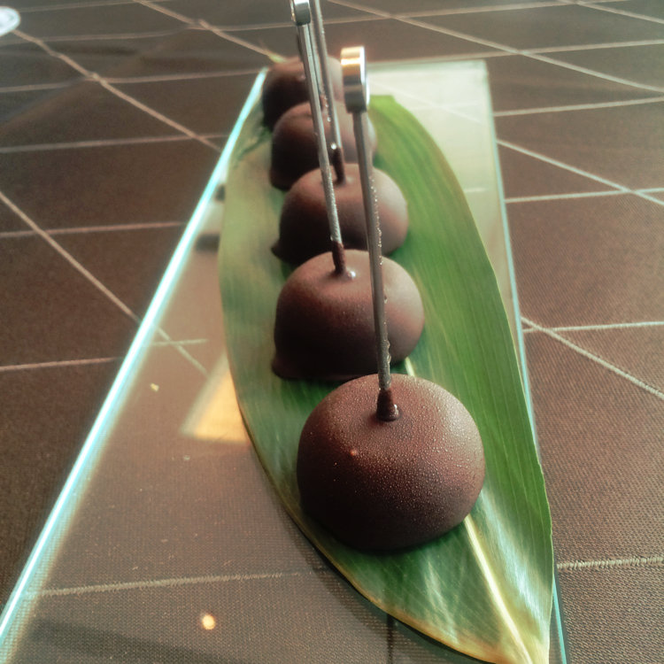 東京都 汐留シティセンター41階。Ar's Italian Cuisineというイタリアンレストランにて。デザートはピノみたいなチョココーティングされたムース😄全部食べたかった…