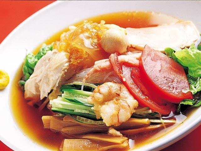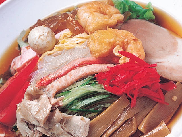 広東料理を中心に豊富なメニューが揃う老舗。通年味わえる冷やし中華のほかにも、テンメンジャンやトウバンジャンが効いた「マーボー焼きそば」など、本場の味わいの中華も楽しめる。