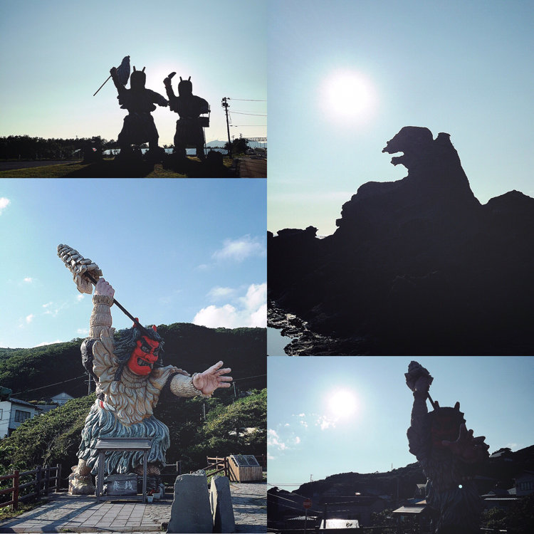秋田山形日記 DAY 2 なまはげゴジラ 入道崎から、男鹿西海岸をドライブーーーン👹🚗💨 海岸線に沿って続く断崖絶壁の光景は、とってもスリリングでした!😱🚗💨💨 でも、大好きな海を見ながらのドライブは最高!😆👍🏼🎶 道沿いに走っていくと、おっきななまはげの背中が見えてきました👹👀🚗✨ 高さ9.99mもある、大迫力の『門前のなまはげ立像』です🖐🏼👹✨ 正面から撮って、逆光になっても迫力あります! 日本海に向かって手をかざし、睨みをきかせる姿は迫力満点! 巨大なまはげを見たあと少し走って、海の有名スポットへ🚗👋🏼👹 夕焼けで見たかった『ゴジラ岩』です🌊🌆 夕焼けで見ると、背景が赤く染まって、空にゴジラが火を吹いているシルエットが浮かび上がって見えるんです!👀🌆 残念ながら、夕焼けの時間帯ではありませんが、これもいい感じの逆光で、ゴジラに見えるでしょ?😉👍🏼 普通の海岸の、ゴツゴツした岩場にあるゴジラ岩。 何名か観光客もいて、やっぱり有名なスポットなんだね👀📷📱✨ 天然岩のゴジラを見たあとは、そのまま秋田市内へ戻ります🚗💨 戻りながら寄り道した、なまはげスポット【男鹿総合観光案内所】へ。 ここにも、巨大なまはげがいました👹👹 すばらしい逆光で、シルエットしか見えない…泣 これはこれで、いい写真だと思うんだけど、やっぱりなまはげの顔や色も見たいよ〜😓 待ってても夜になるだけだし、予約しておいたお店へ夜ごはんを食べに行かなきゃなので、ホテルへ帰りました🚗💦 つづく。 #秋田山形日記 #秋田 #男鹿半島 #男鹿 #なまはげ #ゴジラ岩 #男鹿西海岸 #門前のなまはげ立像 #男鹿総合観光案内所 #逆光