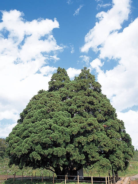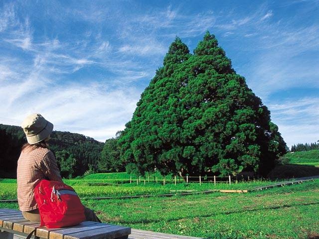 推定樹齢1000年の天然杉で、アニメ『となりのトトロ』に登場するトトロの姿に似ていることで知られている。傍らにはこの木を神木として信仰したことを物語る小祠がある。