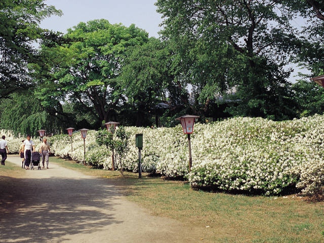 約3000株の白ツツジが植えられた公園。なかには樹齢750年以上の古樹もある。見ごろを迎える5月中旬には、公園が純白に染め上げられる。毎年5月10~31日は「白つつじまつり」を開催。