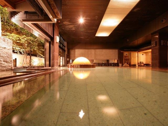 巨石風呂や丸太風呂、蒸風呂等11の浴槽に岩盤浴、貸切風呂、リラックス室、上杉資料室、米沢牛料理が好評