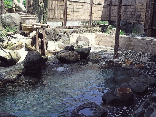 巨石風呂や丸太風呂、蒸風呂等11の浴槽に岩盤浴、貸切風呂、リラックス室、上杉資料室、米沢牛料理が好評
