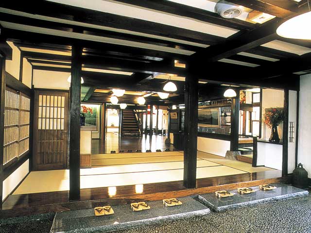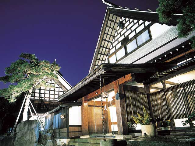築300年以上もの古民家などから成る。骨董品が飾られ、まるで美術館のよう。自慢は岩をくり抜いた露天風呂。夕食は山形牛や地元の食材を贅沢に、朝食は名物餅つきに参加することも可能。