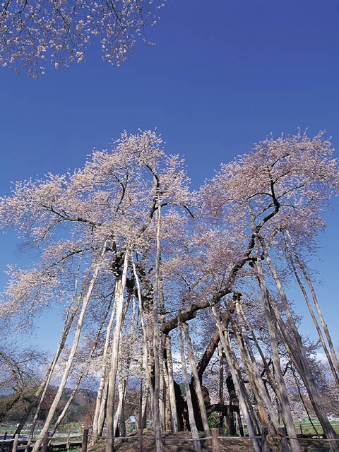 樹齢1200年、高さ16m、特に枝張りは東北地方最大といわれる。山形県内初の国指定天然記念物。開花シーズンの夜間はライトアップされ、夜桜もひときわ美しい。