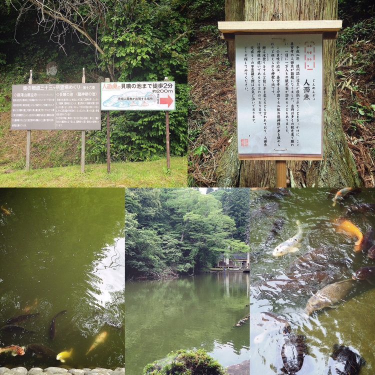 秋田山形日記 DAY 4 善寳寺② お寺さんを見学参拝してから、いざ!人面魚がいるお池まで🚶🏻💦💦 森のなかにある急階段や、いびつな石畳の道をぐんぐん歩いていきます👟👟👞👞 すると、目の前に開けた空間が!🌳🌲😳🌳🌲 人面魚のいるお池は『貝喰の池』という名前らしいです👤🐟 “かいばみ”と読みます☝🏼🙂 名前が、なんか怖い…🐚👄😱 そんな貝喰の池には、まだ不思議な生き物・人面魚がいるみたいなのです! 池のまわりにいたお寺の住職さんや関係者も、多く目撃してると言ってました🗣👀👂🏼✨ これは、ぜひとも人面魚を見つけなければ!笑 それにはまず、鯉たちを集めなければならないので、鯉のエサを買ってあげてみることに。 すると、エサをあげてる小さな空間に、わらわらと鯉たちが集まってきました!(キモキモでした。笑) みんな口をパクパクして、後退りするほどの光景😱💦💦 お池のなかにはカメさんたちもいて、一生懸命に首を伸ばしてエサを求めてる姿が健気でかわいかった🐢🐢🐢 たくさんいすぎる鯉たちの顔を、よーく見ていると… いた! 人面魚! あのグレーがかった、ほんのり金色の四角いお顔。 昔、写真で見た、そのままの姿形をした風貌。 すぐに激写しました!👤🐟📱✨ あれは、確かに人面魚です! うん。 人面魚だよ!😆 自分で信じたほうがいいから、信じます。笑😊👏🏼👏🏼 貝喰の池で見た、人面魚。 不思議な思い出になりました👤🐟✨✨ つづく。 #秋田山形日記 #山形 #善寳寺 #寺 #貝喰の池 #人面魚 #亀 #カメ #鯉 #旅行記 #旅行 #旅