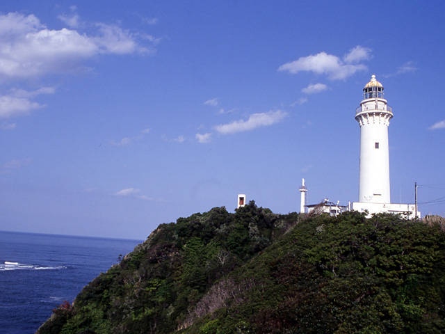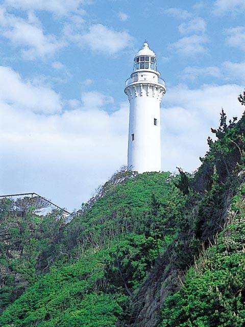 明治32(1899)年に建設。高さ27.3mの白亜の灯台で、美しい姿が印象的だ。映画『喜びも悲しみも幾歳月』の原作者が住んでいたことから全国的に有名になった。