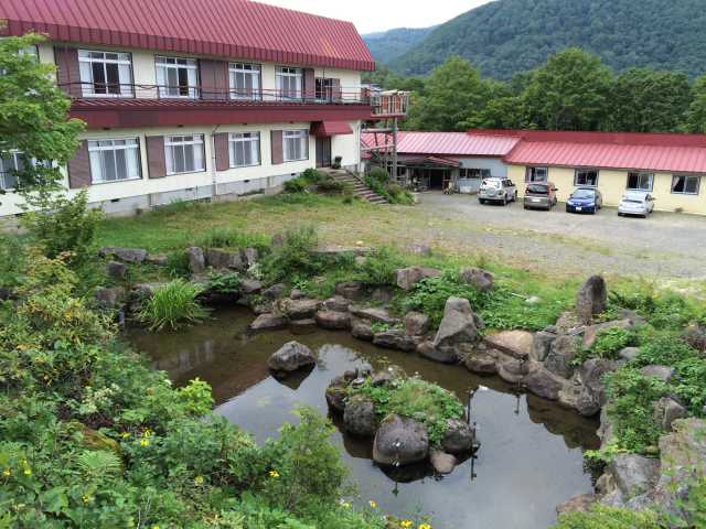 露天風呂は男女別でコンクリート造りの素朴なもの。周囲の山々や林などの風景を眺めながら湯を楽しめる。単純緑ばん泉で、内湯とは泉質が違う。