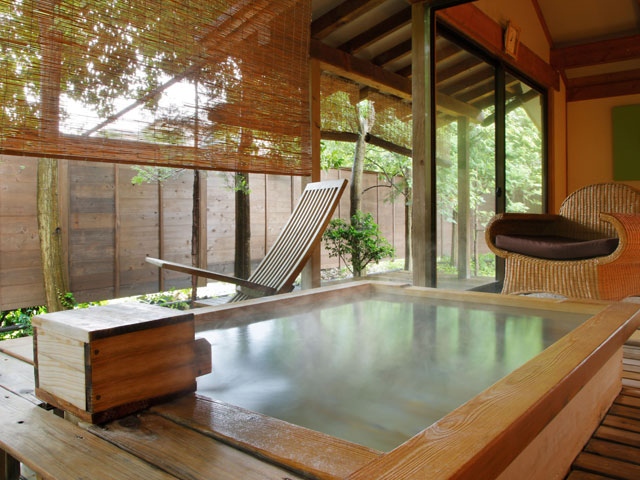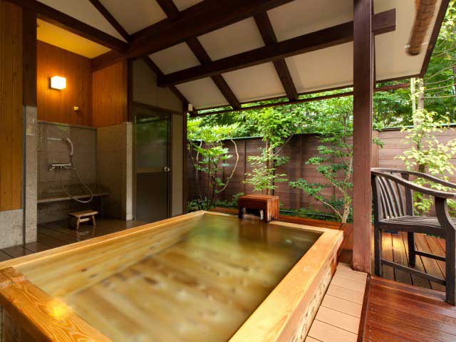渓谷美が自慢の老舗宿。平成27年に大浴場「宝の湯」が改築され、新たに丸風呂や角風呂が加わった。また檜露天風呂からの眺望は息をのむ美しさだ。貸切露天風呂「森のお風呂ほおずき亭」、「自然浴離れの湯あけび」の他、貸切風呂が自慢の宿。