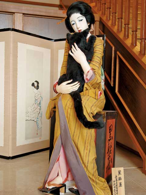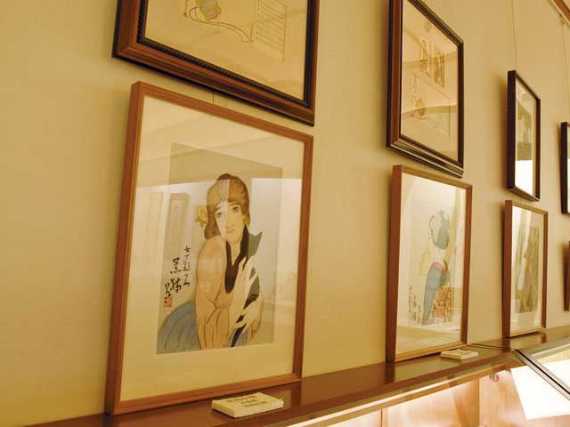 モダンな洋館の中には大正時代に独特な美人画と抒詩文で一世を風靡した竹久夢二の貴重な作品が並ぶ。敷地内にはゆば懐石が楽しめる料亭や、庭園を望むレストランがある。