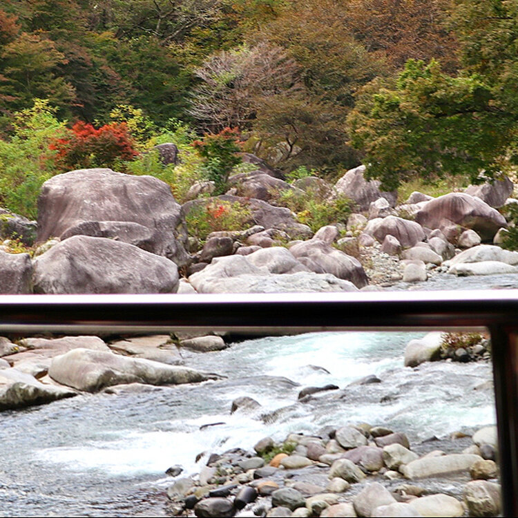 全館、谷川の清流に面し、窓いっぱいに広がる大自然と常に溢れる豊富な天然温泉をお楽しみ下さい。